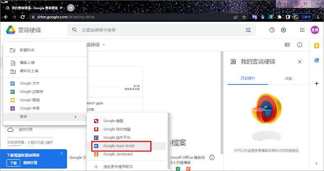 除了可利用 Python 來推播 LINE Notify 訊息外,也可利用 Google Apps Script 腳本平台推播訊息。 將未命名專案的名稱加以變更,本例變更為 LINE 推播訊息。將 myFunction 函數名稱改為 doPost。